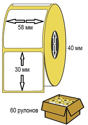 Термоэтикетки 58x30 ТОП (в рулоне 900 шт) (коробка 60 роликов)